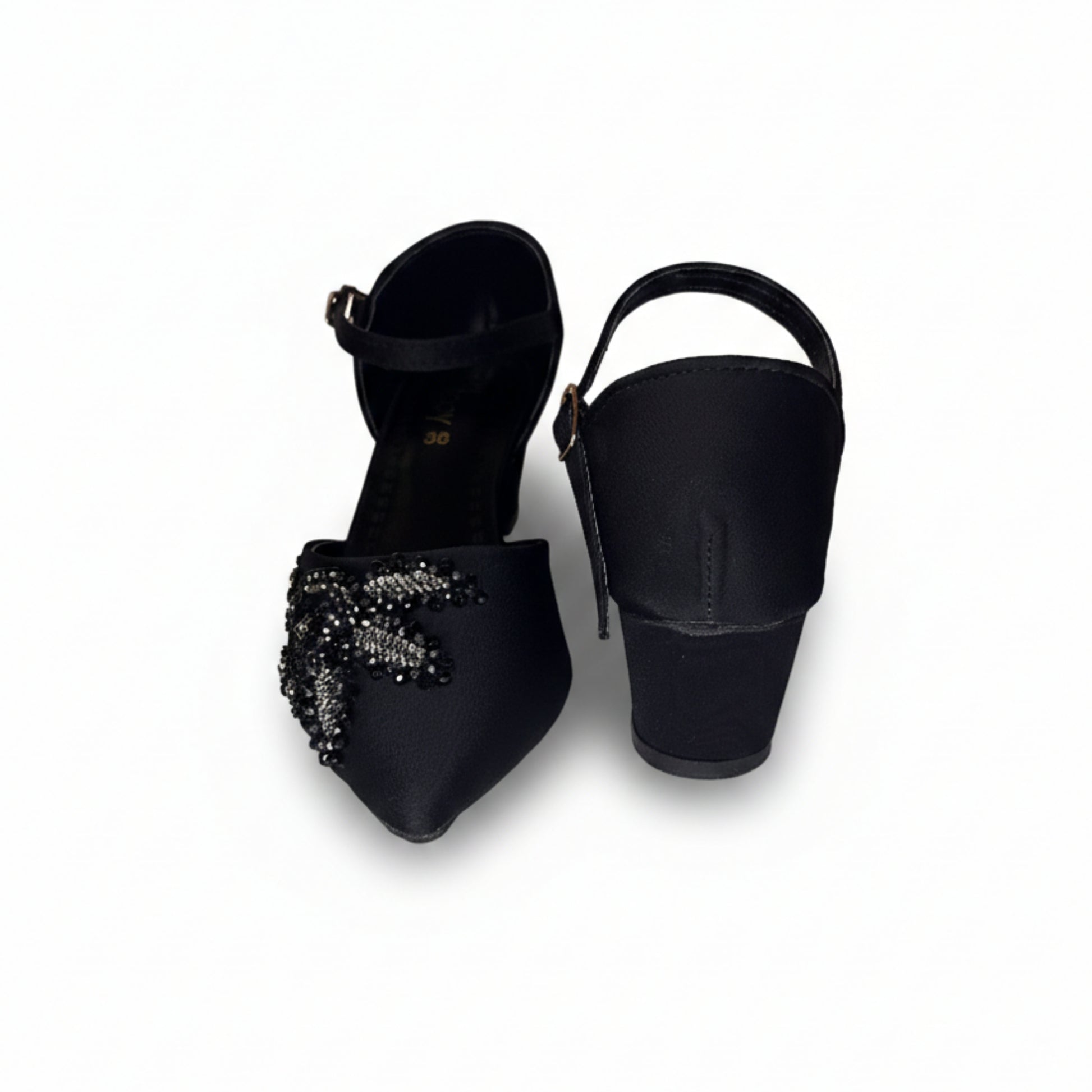 Women’s Black Embellished Ankle Strap Low Heels