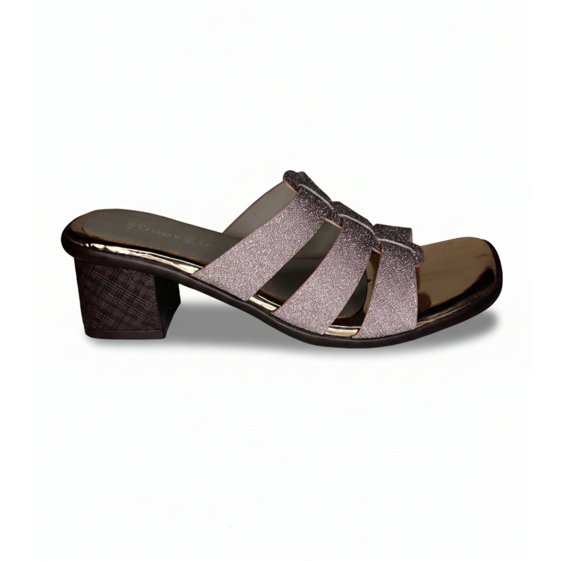 Elegant women’s slide sandals with shimmering multi-strap design and a stable block heel, offering comfort and style for festive wear, casual evenings, and special occasions.